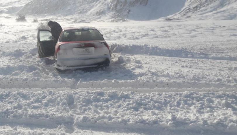 Sivas’ın Gürün ilçesinde tipi nedeniyle yolda mahsur kalan araçların yardımına polis ve karayolları ekipleri koştu.