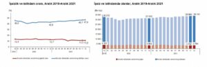 Türkiye genelinde 15 ve daha yukarı yaştaki kişilerde işsiz sayısı 2021 yılı Aralık ayında, bir önceki aya göre 2 bin kişi artarak 3 milyon 794 bin kişi oldu. İşsizlik oranı ise 0,1 puanlık azalış ile yüzde 11,2 seviyesinde gerçekleşti.