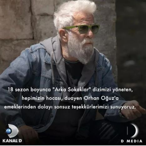 Dizinin resmi hesabından yapılan duyuruda, "18 sezon boyunca Arka Sokaklar dizimizi yöneten, hepimizin hocası, duayen Orhan Oğuz'a emeklerinden dolayı sonsuz teşekkürlerimizi sunuyoruz" ifadeleri kullanıldı.