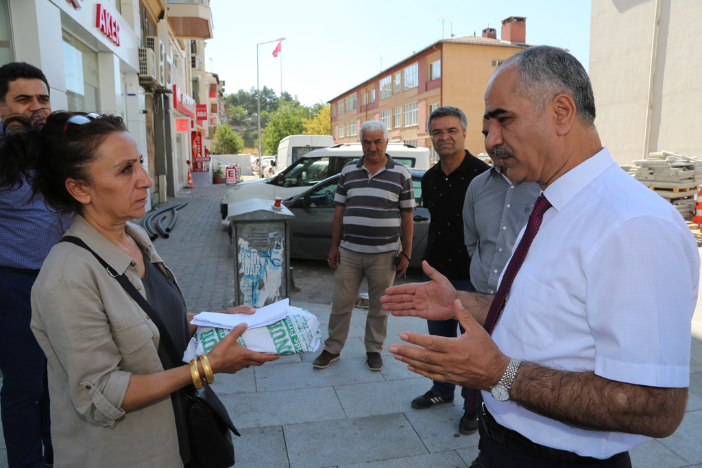 Belediye Başkanı Sami Aydın İstasyon Caddesi’nde, 12 yıl önce yapılan ve deforme olan kaldırımların değişim çalışmasını yerinde inceleyerek cadde esnafını ziyaret etti.