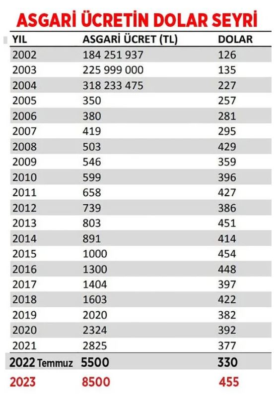 Asgari ücretin Temmuz ayında yapılacak olan Temmuz zammı eğer Ocak zammı gibi olursa 455 dolar olacak...