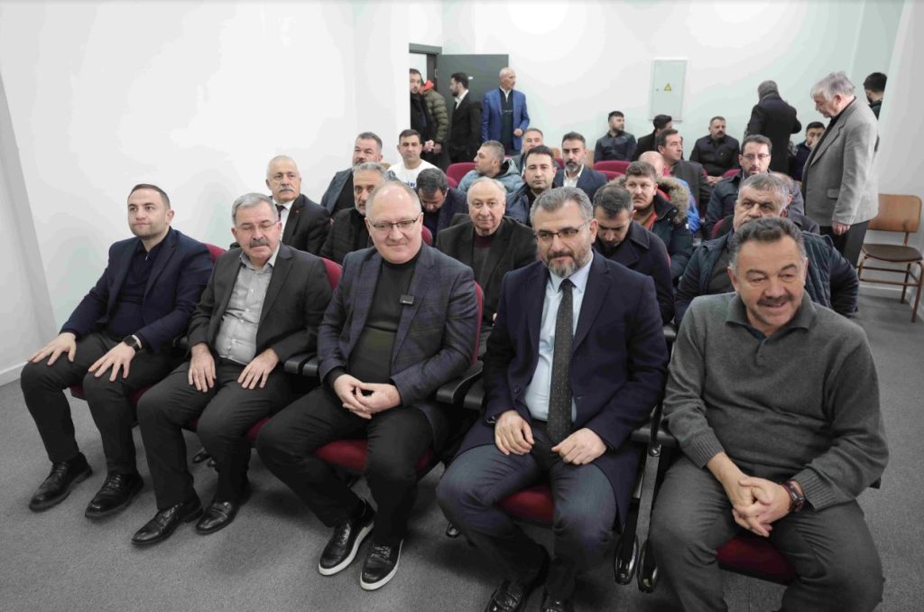 Konuşmaların ardından 5 yıllık görev sürecinde gerçekleştirilen çalışmalar için Amatör Spor Kulüpleri Federasyonu Sivas Şube Başkanı Zeki Ekici tarafından Başkan Bilgin’e plaket takdim edildi. (Halil Yavuz Canpolat)
