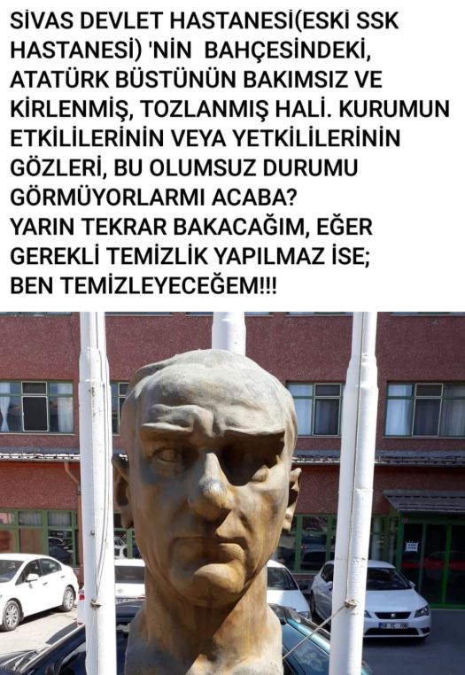 Sivas’taki tozlanmış, kirlenmiş, eskimiş Atatürk Büstü tepkilere neden oluyor