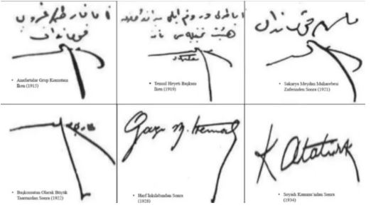 Atatürk’ün kullandığı imzaların, görev yaptığı dönemlere göre değişiklik gösterdiği ifade edildi. Buna göre;