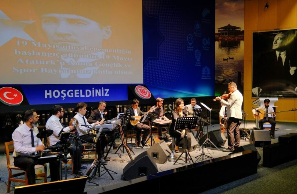 Sazlarda Türk Müziği Devlet Konservatuvarı öğretim elemanları ve öğrencilerinin görev aldığı konserde, Atatürk’ün sevdiği eserlerden “İzmir’in Kavakları”, “Kimseye Etmem Şikâyet”, “Bülbülüm Altın Kafeste” gibi şarkılar seslendirildi. (İHA)
