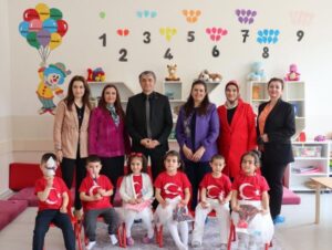 23 Nisan Ulusal Egemenlik ve Çocuk Bayramı dolayısıyla okullarda düzenlenen etkinliklere katılan İl Milli Eğitim Şube Müdürü Süleyman Bekdaş ve Sivas Olgunlaşma Enstitüsü Müdürü Aysel Şenlen, öğrencilerin bayramını kutlayarak Sıfır Atık Projesi çerçevesinde tasarlanan bebekleri öğrencilere hediye etti.