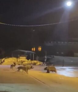 Kış turizminin önemli merkezlerinden Uludağ’da aç kalan ayılar, yemek aramak için oteller bölgesindeki çöp konteynerlerini kurcalamaya başladı.