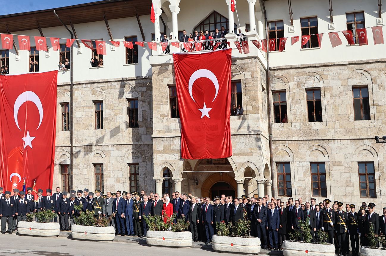 Millî Mücadelede ve Cumhuriyetin kuruluşundaki süreçte büyük fedakârlıklar gösterildiğini de anımsatan Vali Şimşek, “Cumhuriyetimize nice yüz yıllar diliyorum. Başta Gazi Mustafa Kemal Atatürk'ü, silah arkadaşlarını, kanlarıyla bu toprakları bizlere vatan yapan aziz şehitlerimizi ve gazilerimizi sonsuz minnet, şükran ve rahmetle anıyorum. Ruhları şad olsun” diye konuştu.