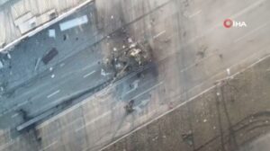 Azov Taburu, Mariupol'de Rusya’ya ait tankı imha ettikleri ana ait insansız hava aracı ile çekilen görüntüleri paylaştı.iha
