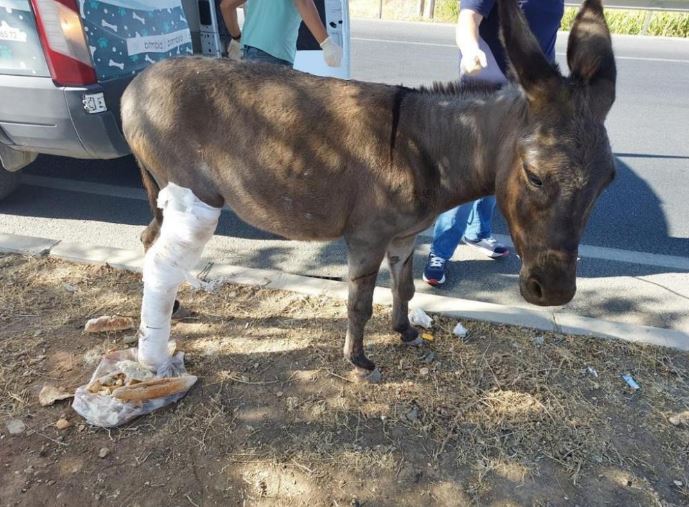 Sağ arka bacağı kırılan eşeğin Osmaniye ilinde HAYTAP’a ait Emekli Hayvanlar Çiftliği’ne gönderilmek üzere yetkililerle iletişime geçildi.