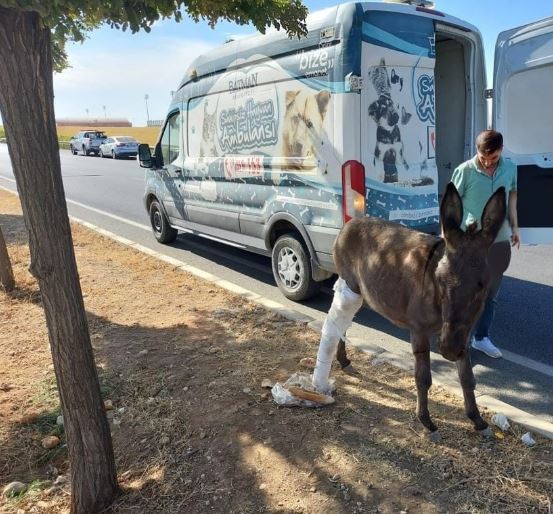 Batman Belediyesi, bir aracın çarpması sonucu bacağı kırılan eşek için seferber oldu.