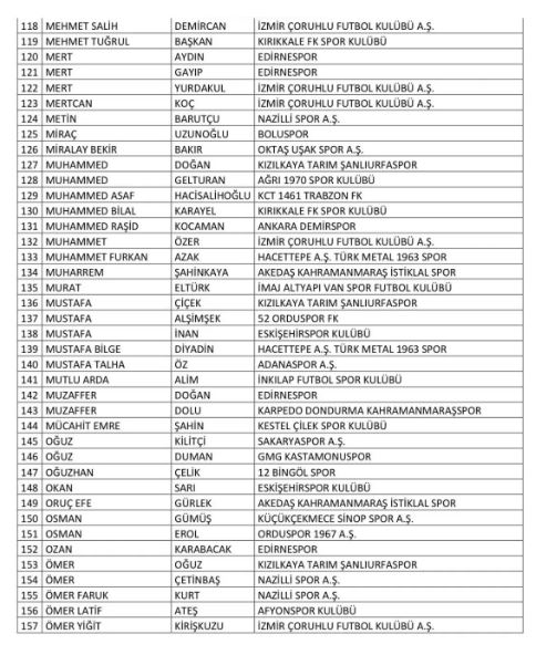 “Profesyonel liglere yönelik olarak yürütülen bahis soruşturması kapsamında, ilgili lig statülerine göre profesyonel maçlarda görev alabilen amatör statüdeki 658 futbolcudan bahis oynadığı tespit edilen 197 futbolcu tedbirli olarak PFDK’ya sevk edilmiştir.”