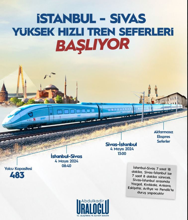 Bakan yaptığı açıklamada: "Sivas ile İstanbul Arasında Aktarmasız YHT Ekspres Seferleri Başlıyor. 🚆