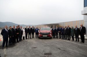 İncelemelerinin ardından iki bakan, Togg’un ilk üretilecek SUV modelinin en üst versiyonunun kırmızı beyaz renkli test aracının direksiyonuna geçti. İlk olarak Togg’un koltuğuna oturan Bakan Nebati, “Türkiye’de, Bursa’da, Gemlik’te kendi üretimimiz olan ToggSUV modelinin en üst versiyonunda genel müdür ve milletvekillerimizle birlikte oturuyoruz. Bu müthiş bir duygu” dedi.