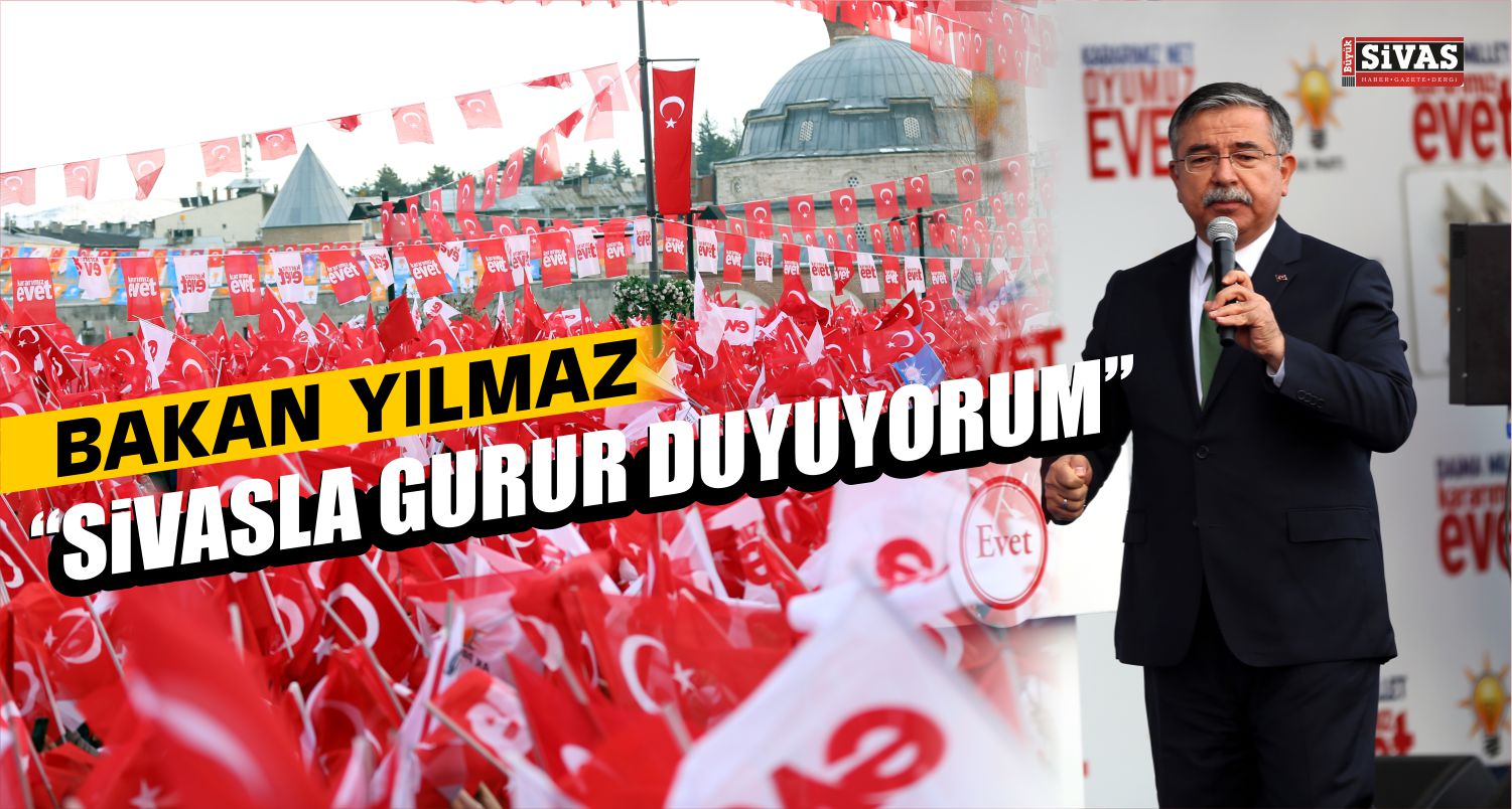 Yılmaz, Sivas Kent Meydanı'nda Başbakan Binali Yıldırım'ın katıldığı mitingde yaptığı konuşmada, Sivas'la gurur duyduğunu söyledi.