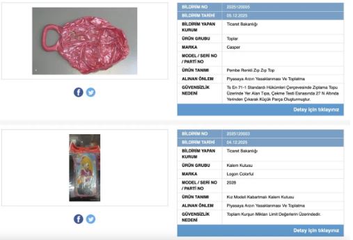 Listede yer alan bir diğer ürün ise “Logon Colorful” marka kalem kutusu oldu. Üründe yapılan teknik analizlerde limit değerlerin üzerinde kimyasal madde tespit edildi. Bu durumun özellikle çocuk sağlığı açısından tehlike oluşturabileceği aktarıldı.