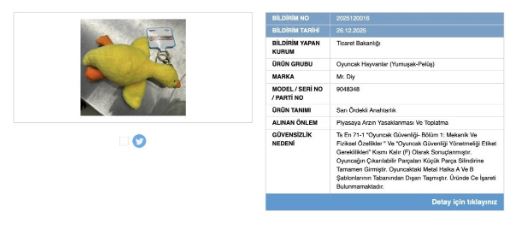 Ticaret Bakanlığı yetkilileri, özellikle çocuklara yönelik ürünlerde güvenlik kriterlerinin hayati önem taşıdığına dikkat çekerek, tüketicilerin şüpheli ürünlerle karşılaşmaları halinde ilgili mercilere bildirimde bulunmalarını istedi.