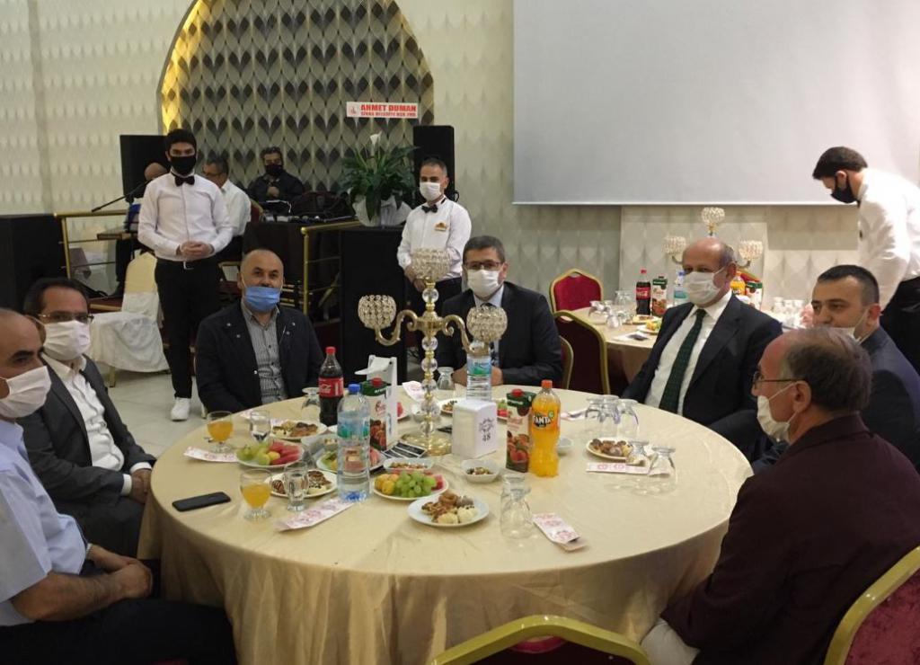 Covid-19 tedbirleri kapsamında gerçekleşen kına gecesine kız ve erkek tarafından aile yakınlarının yanı sıra şehrin kanaat önderleri ve bürokratlarda katıldı.