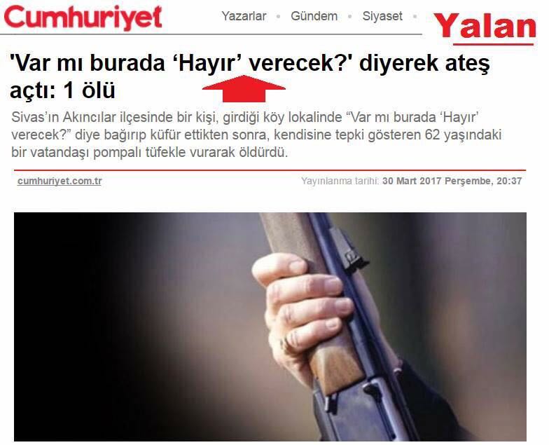 Bunun üzerine Cumhuriyet’te vatandaşları çatışmaya sürükleyen 'Var mı burada ‘Hayır’ verecek?' diyerek ateş açtı: 1 ölü başlığını atarak ortalığı karıştırdı.