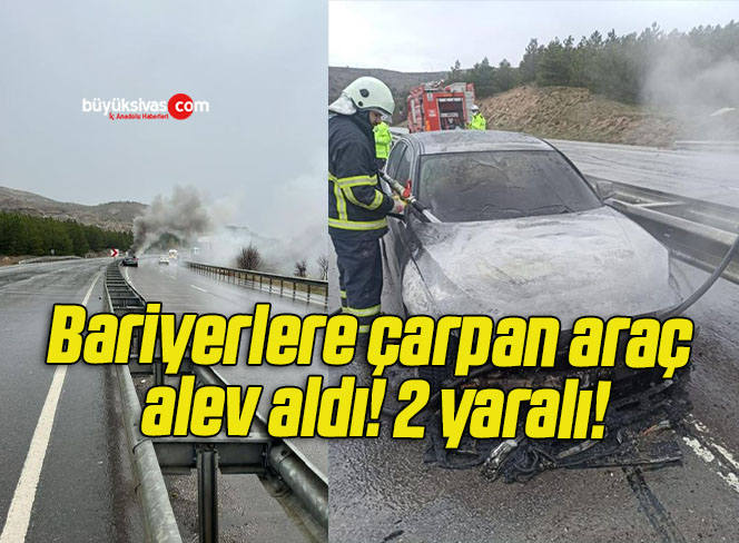 Sivas’ta virajı aldığı sırada bariyerlere çarpan otomobil alev aldı. Kazada 2 kişi hafif şekilde yaralandı.