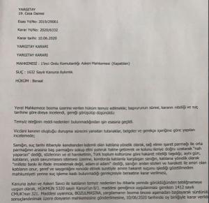 Yargıtay 19. Ceza Dairesi, kapatılan 1’inci Ordu Komutanlığı Askeri Mahkemesinin verdiği kararı bozdu.
