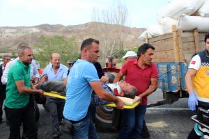 Çuvallardan bir kısmı traktör sürücüsü Yüksel'in kafasına düştü.