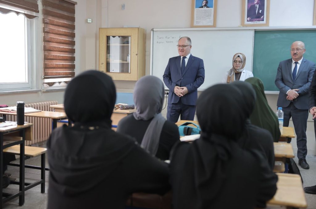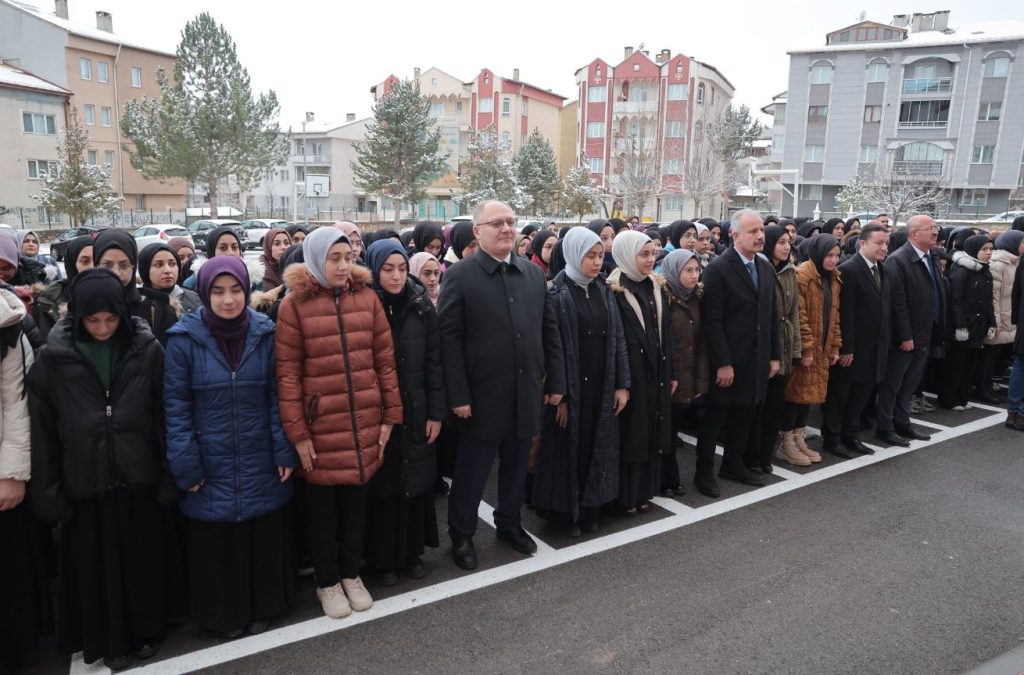 Okul ziyaretleri kapsamında Abdussamed Bal Kız Anadolu İmam Hatip Lisesi'ne konuk olan Bilgin, bayrak törenine katılarak öğrencilerle beraber İstiklal Marşı'nı okudu.