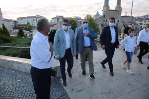 Halkın yoğun ilgisi ile karşılaşan ikili sosyal mesafeye dikkat  ederek Sivaslıların bayramını kutladı