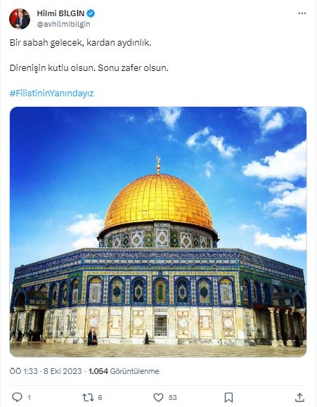 Sivas Belediye Başkanı Hilmi Bilgin sosyal medya hesabından Filistin paylaşımı yaptı.