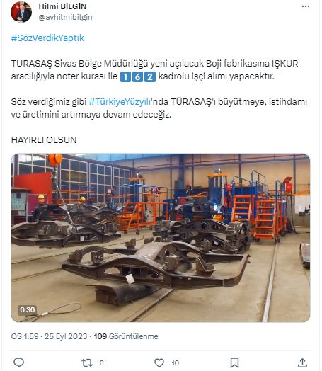 TÜRASAŞ Sivas Bölge Müdürlüğü yeni açılacak Boji fabrikasına İŞKUR aracılığıyla noter kurası ile 1️⃣6️⃣2️⃣ kadrolu işçi alımı yapacaktır.