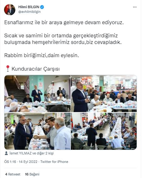 Rabbim birliğimizi,daim eylesin. Kunduracılar Çarşısı" ifadeleri ile takipçilerine duyurdu.