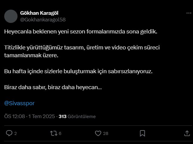 Karagöl paylaşımında, “Heyecanla beklenen yeni sezon formalarımızda sona geldik. Titizlikle yürüttüğümüz tasarım, üretim ve video çekim süreci tamamlanmak üzere. Bu hafta içinde sizlerle buluşturmak için sabırsızlanıyoruz. Biraz daha sabır, biraz daha heyecan…” ifadelerine yer verdi.