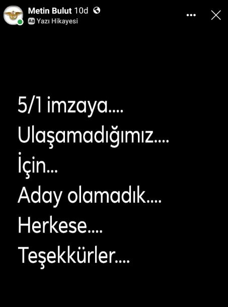 Başkan adaylığı için 25 senedir bir çok girişim ve paylaşımda bulunan bulut toplam delege sayısını 5/1 i olan 32 imzayı toplayamadı. Ve Başkanlığa aday olamadı.
