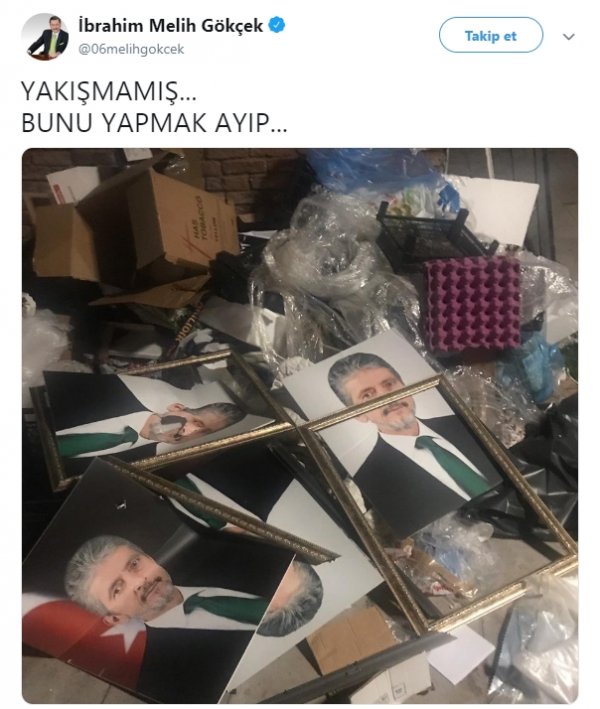 Çöpe atılan portrelerin fotoğrafını Twitter'dan paylaşan eski Ankara Büyükşehir Belediye Başkanı Melih Gökçek ise "Yakışmamış... Bunu yapmak ayıp..." dedi. ensonhaber