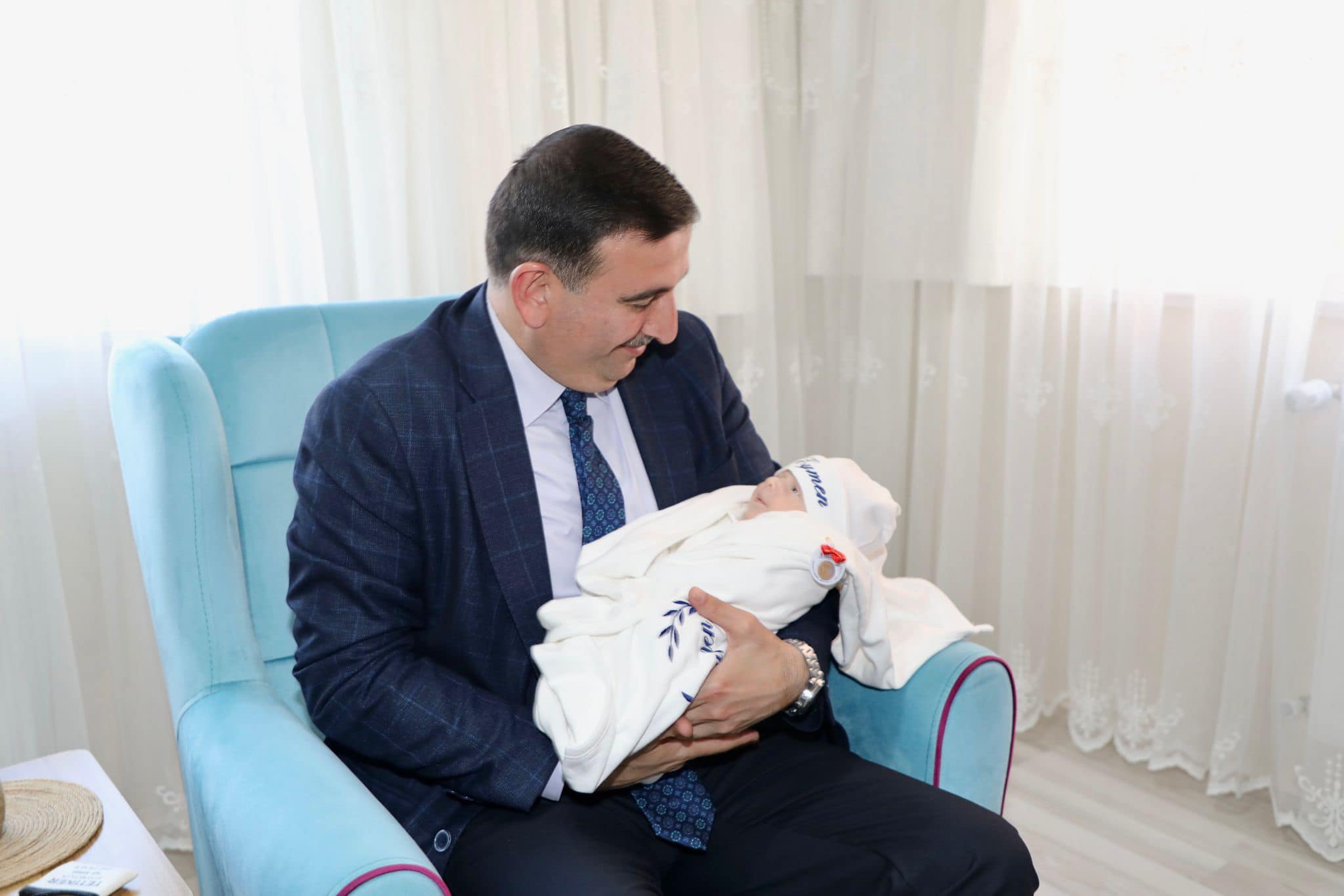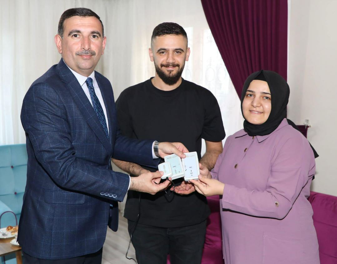 Başkan Topgül aileye bebekleri ağladığında hemen algılayabileceklerini sağlayan bir cihaz hediye ederek gönülle dokundu... ŞEREF GÜLMEZ