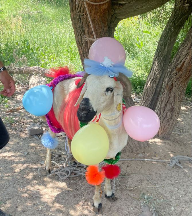 Sivas'ta gelin adayına Kurban Bayramı'nda süslenen kınalı koç gönderme geleneği devam ediyor. Sivaslı damat nişanlısının evine balonlarla süslenmiş kınalı koç götürdü.