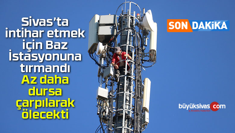 Sivas'ta intihar girişimi! Baz istasyonuna tırmandı, yürekleri ağızlara getirdi