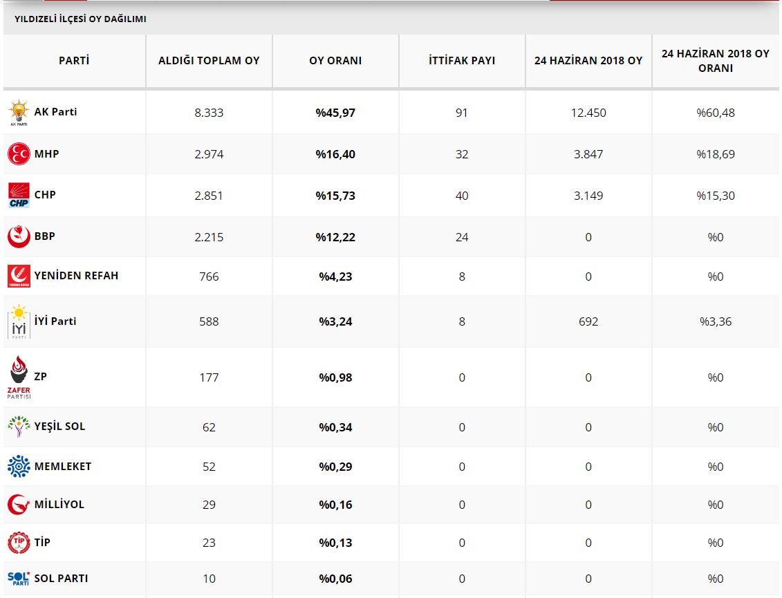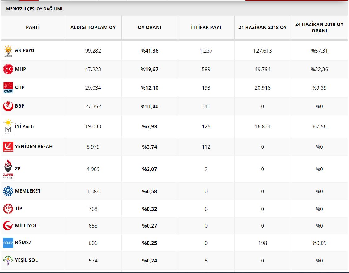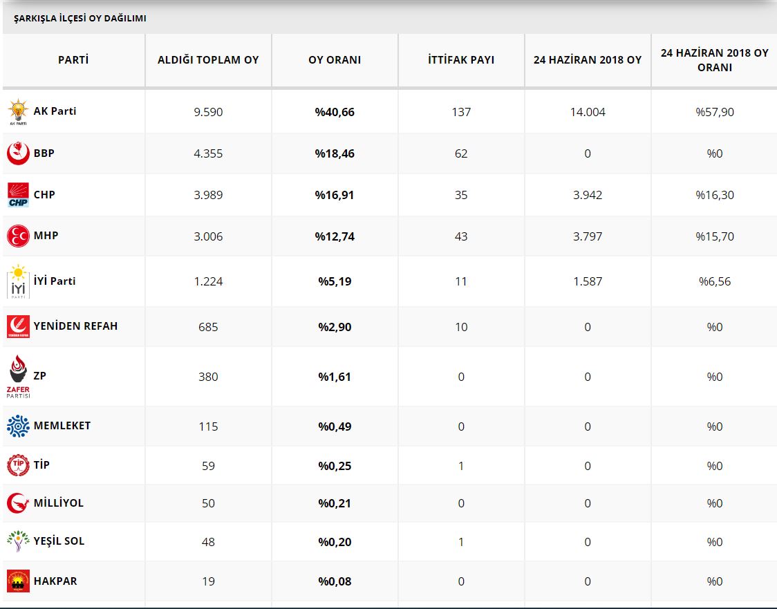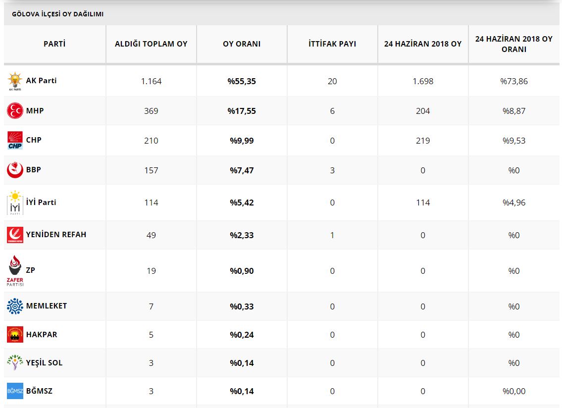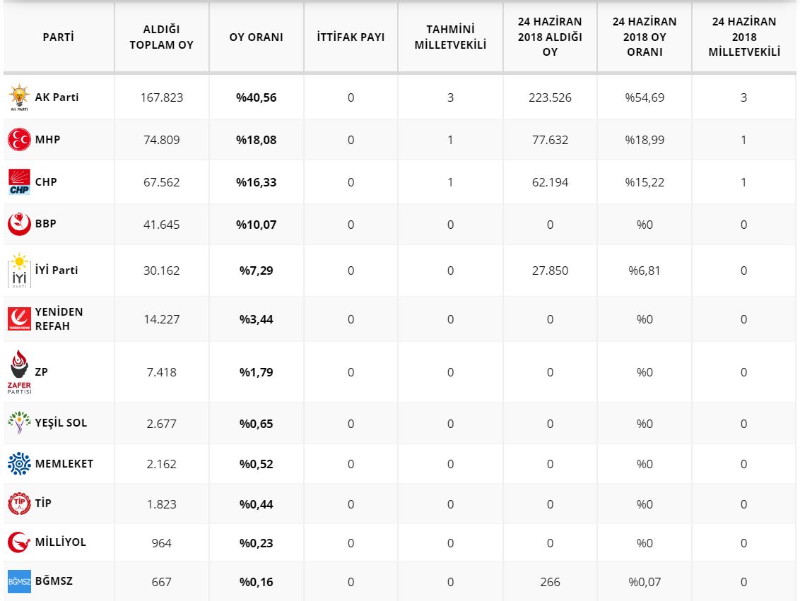 Kayda değer oranlarda oy alabilen Yeniden Refah Partisi 14.227 oy, Zafer Partisi ise 7.418 oy aldı.