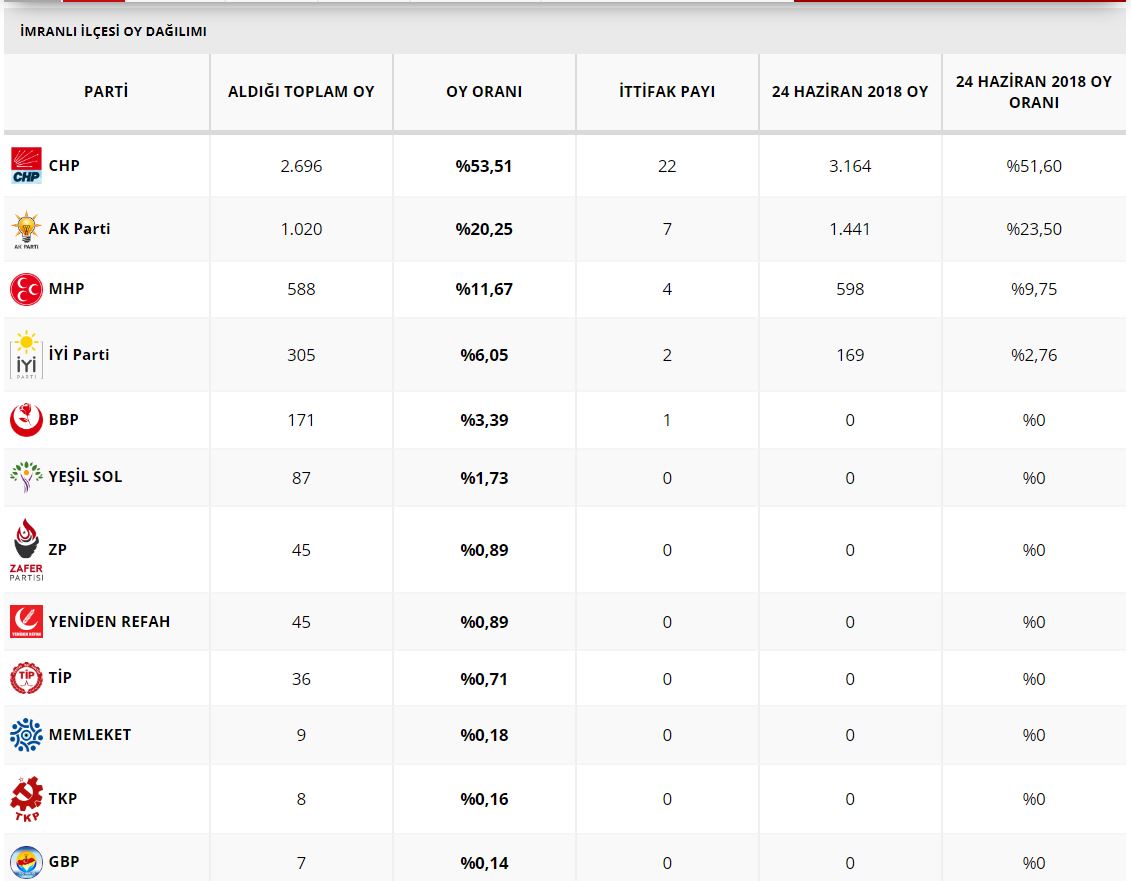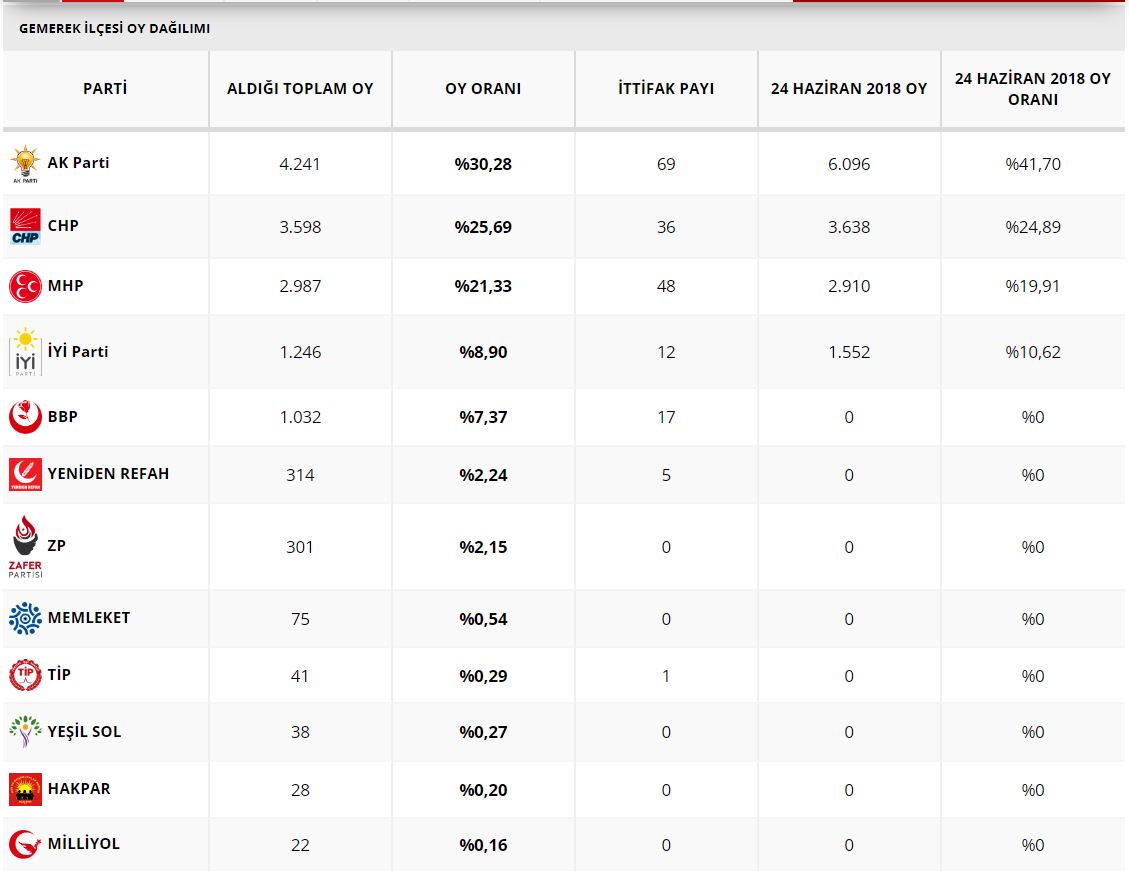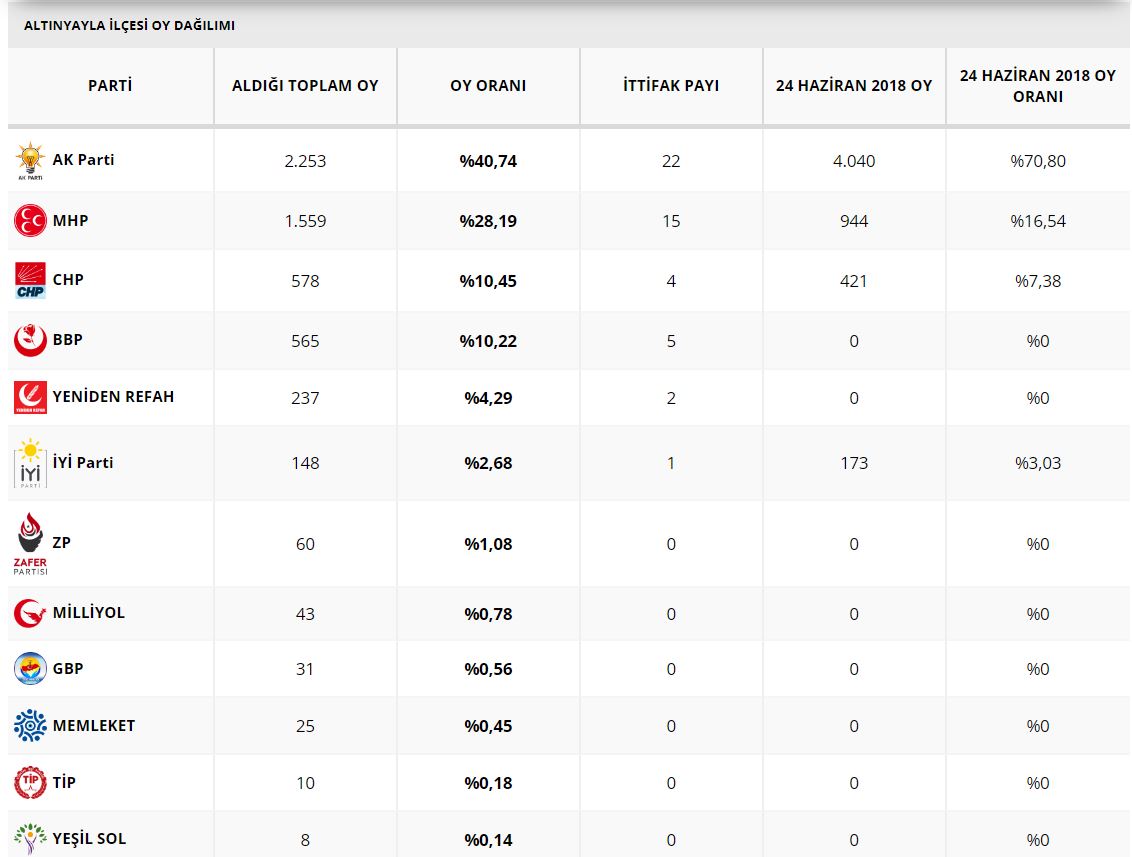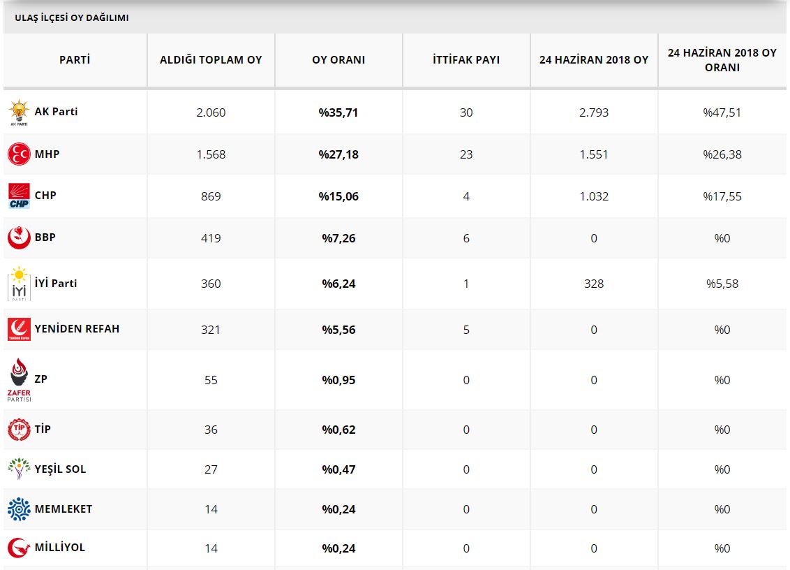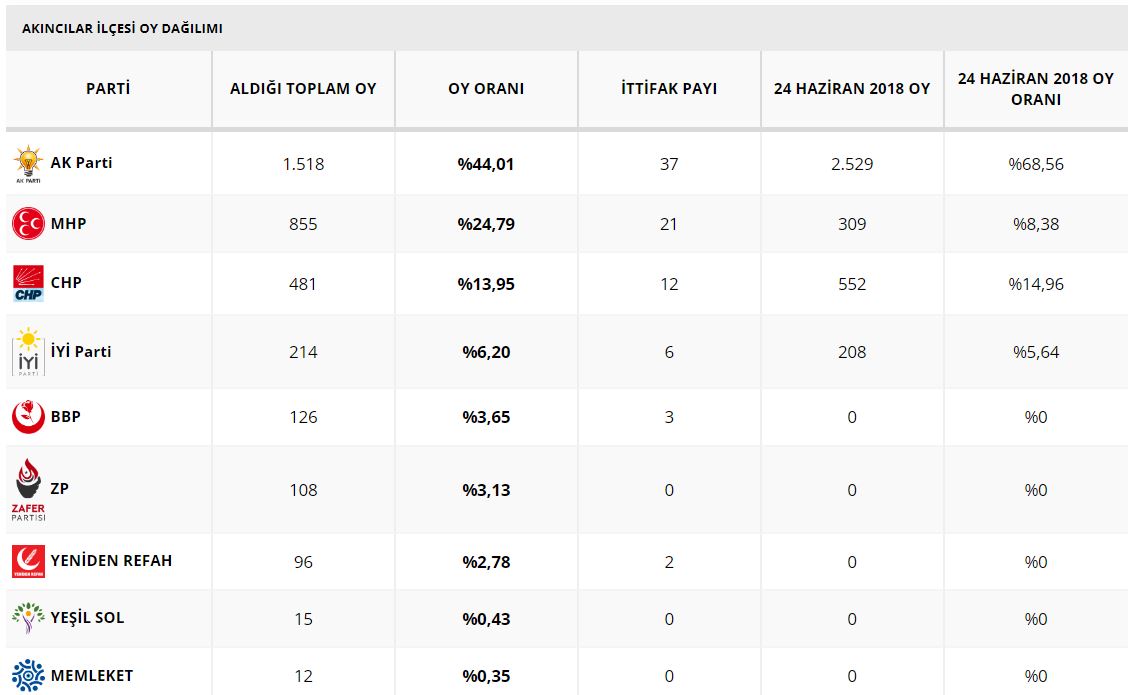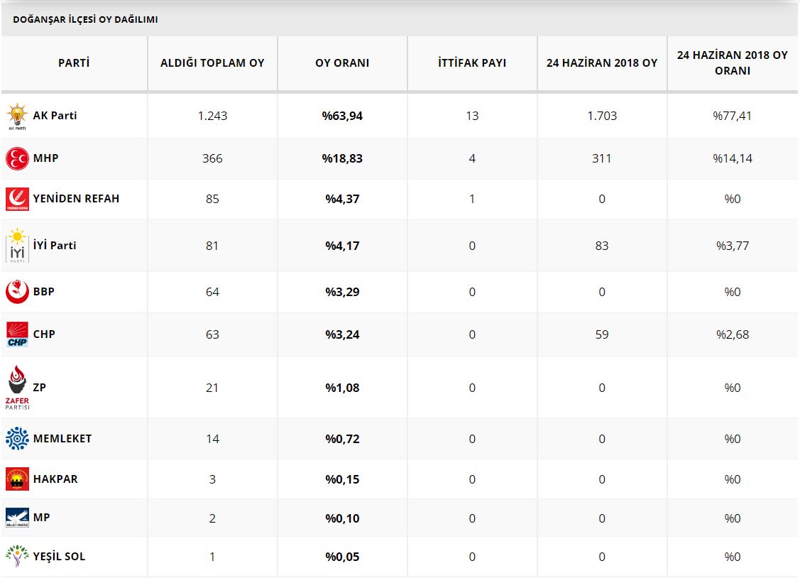 Kayda değer oranlarda oy alabilen Yeniden Refah Partisi 14.227 oy, Zafer Partisi ise 7.418 oy aldı.