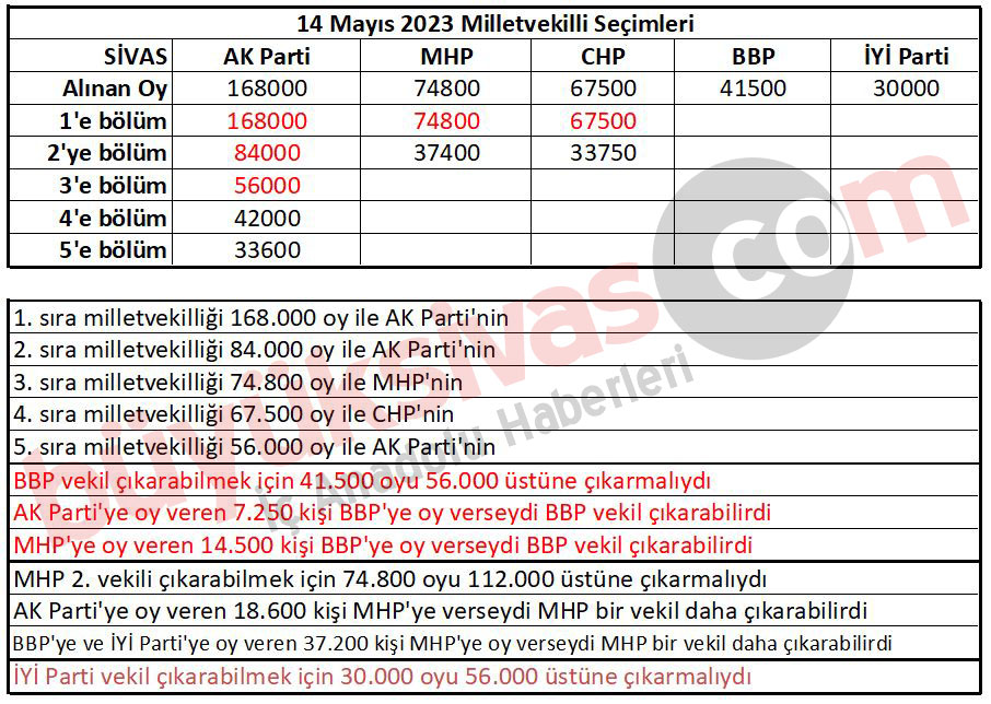 AK Parti'nin mevcut aldığı 168.000 oydan 7.250 oy daha BBP'ye gitmiş olsaydı BBP'de Sivas'ta vekil çıkarabilecekti. Burada dikkat edilmesi gereken durum şu;