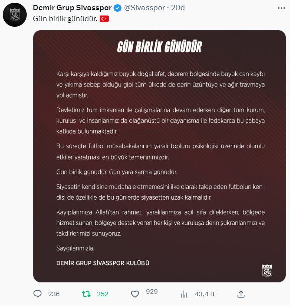 • Sivassporlu taraftarların beklediği açıklama geldi! “Gün birlik günüdür”