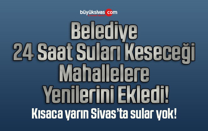 Mahallelerde devam eden yol, kaldırım ve aydınlatma çalışmaları öncesinde bölgedeki alt yapıyı da yenileyen Sivas Belediyesi bu çalışmalar nedeniyle sık sık su kesintisi yapmak zorunda kalıyor. Bugün yapılan 2 farklı duyuru ile yeni mahalleler eklendi.