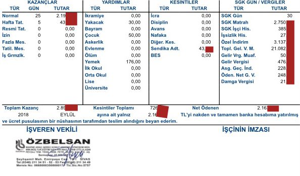 ÖZBELSAN İŞÇİSİ ÖRNEK BORDRO
