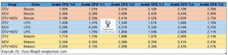 Vergi uzmanı Dr. Ozan Bingöl 3 Ocak 2024 tarihinde TÜİK tarafından Aralık 2023 Yİ-ÜFE rakamları açıklandığında akaryakıt ürünlerindeki maktu ÖTV tutar artışları netleşmiş olacağını belirterek gelecek zamları hesapladı.