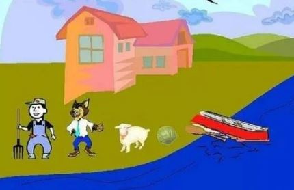 Çiftçi, bir kurt, bir keçi ve bir göbek lahanayı nehrin karşısına geçirmek istemektedir. Nehirde köprü yoktur ve kendisiyle birlikte nehrin karşısına geçirmek istediklerinden sadece bir tanesini taşıyabilen küçük bir botu vardır. Çiftçi eğer kurdu önce götürmek isterse keçi lahanayı yiyecektir, eğer lahanayı önce götürmek isterse de kurt keçiyi yiyecektir. Yani nehrin herhangi iki yakasında aynı anda kurt ve keçiyi ya da keçi ve lahanayı başbaşa bırakmaması gerekmektedir. Çiftçi bu transferi keçisine ve lahanasına zarar gelmeden nasıl gerçekleştirmelidir.