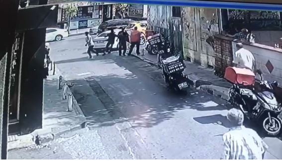 Burada bir süre yürüyen genci arkasında takip eden bir şahıs, yüzüne biber gazı sıkarak etkisiz hale getirmeye çalıştı. Direnmesi üzerine araçla gelen iki şahıstan biri de aşağıya inerek genci yere düşürdü.