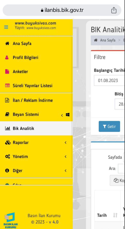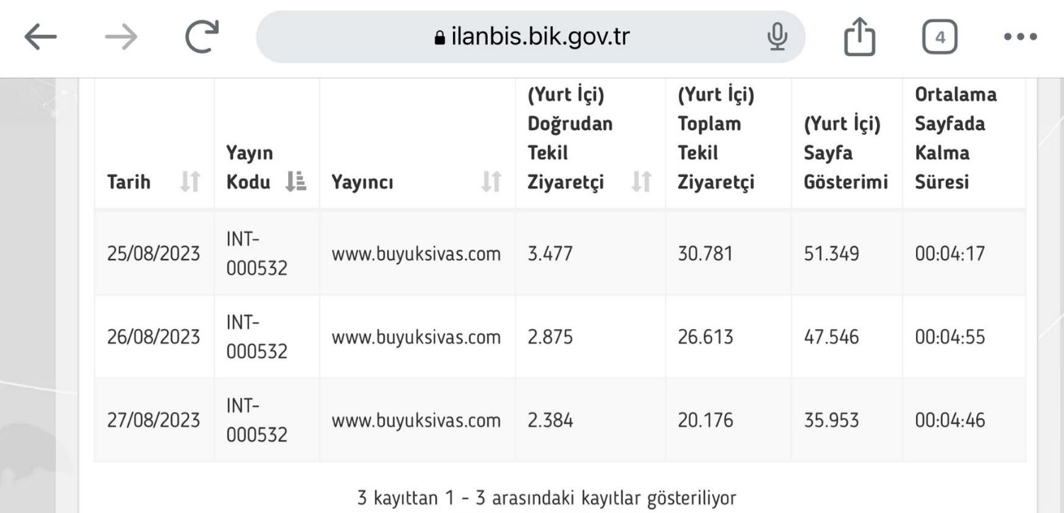 Ziyaretçi trafiklerini ölçümlemek için Basın İlan Kurumu tarafından geliştirilen BİK Analitik yazılımından elde edilen veriler haber siteleri ile paylaşıldı. Ölçüm verileri, 1 Ekim 2023 tarihi itibarıyla resmi ilan dağıtımında esas alınacak.