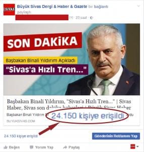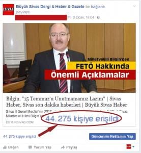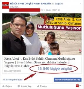 Bu sayılar sadece sosyal medya hesabımız facebook ortamından erişilen kişi sayılarıdır Haberlerimize twitter, instagram vb. sosyal medya ve doğrudan buyuksivas.com adresimizi tıklayarak ayrıca binlerce kişiye erişmektedir.