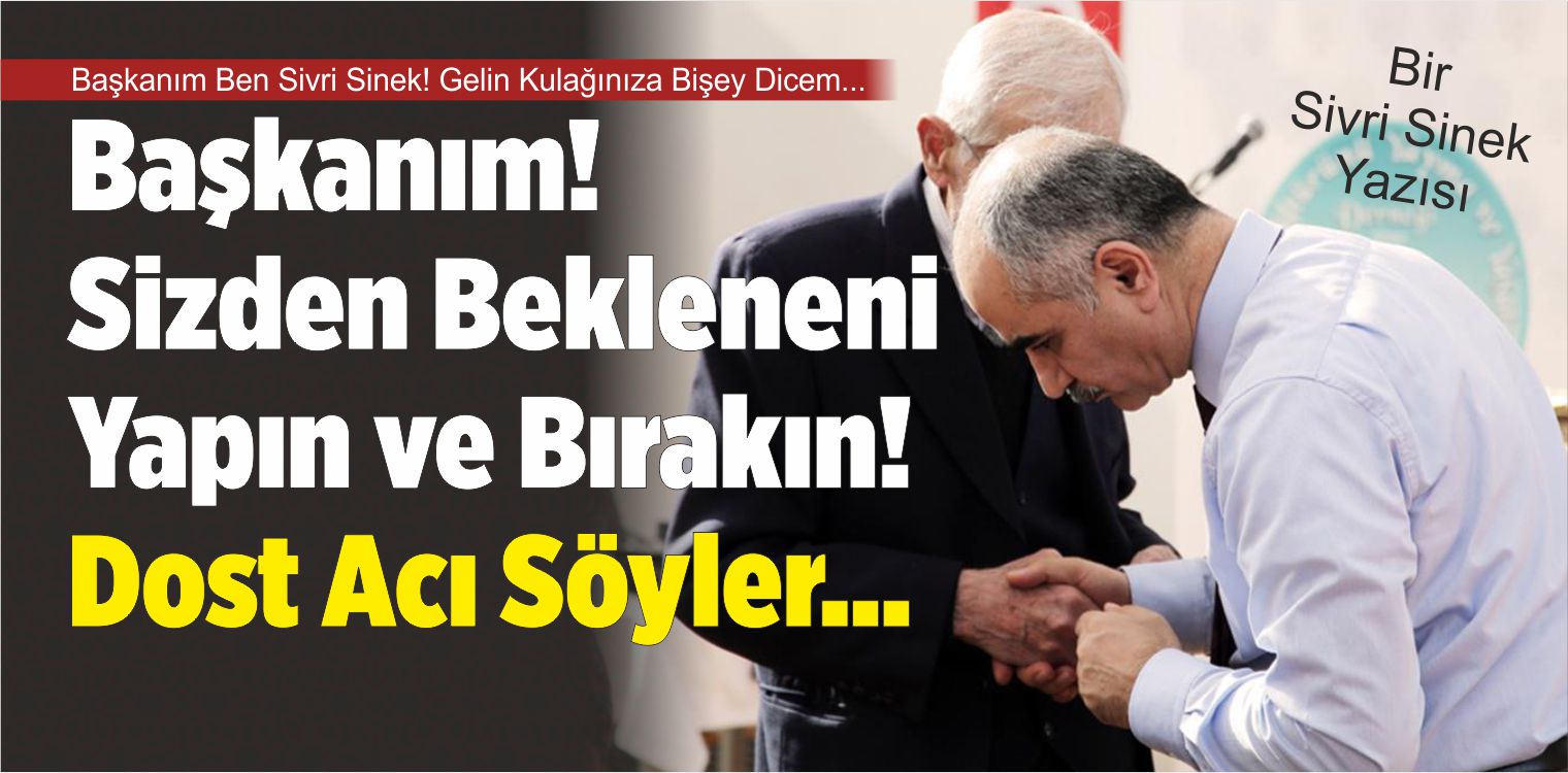 Merhabalar... Yine Ben... Sivri Sinek... Vızırdayacağım, ama Başkanım inan ben sizin asıl dostunuzum. Yanınızdakilerin çoğu dostunuz filan değil, biliyorum ancak gaz veriyorlar ama bire bir de yanınızdan uzaklaştıklarında "Başkan Aday olursa onlarda kaybedecek" diyorlarmış... Ama başkanım inanın bırak diyen kimse yok etrafınızda...