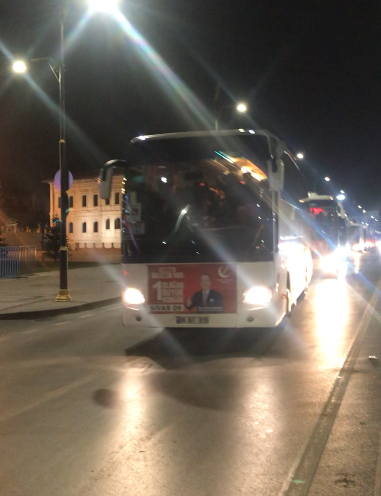 Aynı coşku ve heyecanı paylaşan hemşehrilerimiz de gece saatlerinde Sivas Kent Meydanında toplanarak Büyük Kongre’ ye katılmak üzere toplamda 15 otobüsle Sivas’tan Ankara’ya yola çıktı. Yeniden Refah Partisi Sivas İl Başkanlığının düzenlediği organizasyona Sivas’ tan ve ilçelerinden yoğun bir katılım olduğu gözlendi.